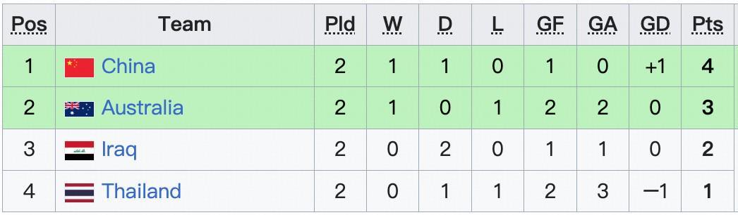 ④更大比分小负1球的情况下,依然中泰携手出线,澳大利亚出局。